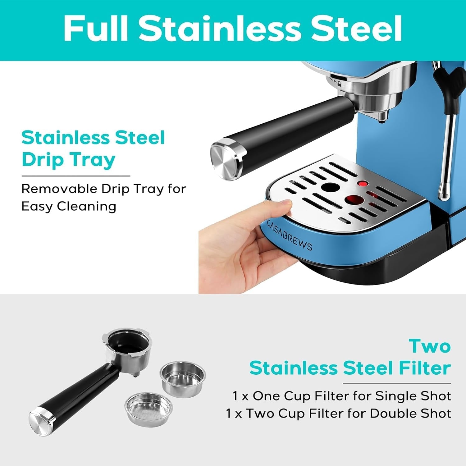 【Détails bien pensés】 Sa taille compacte s'intègre parfaitement dans les petites cuisines. La conception anti-goutte et le bac d'égouttage magnétique simplifient le nettoyage, garantissant une expérience de café fraîche au quotidien.
