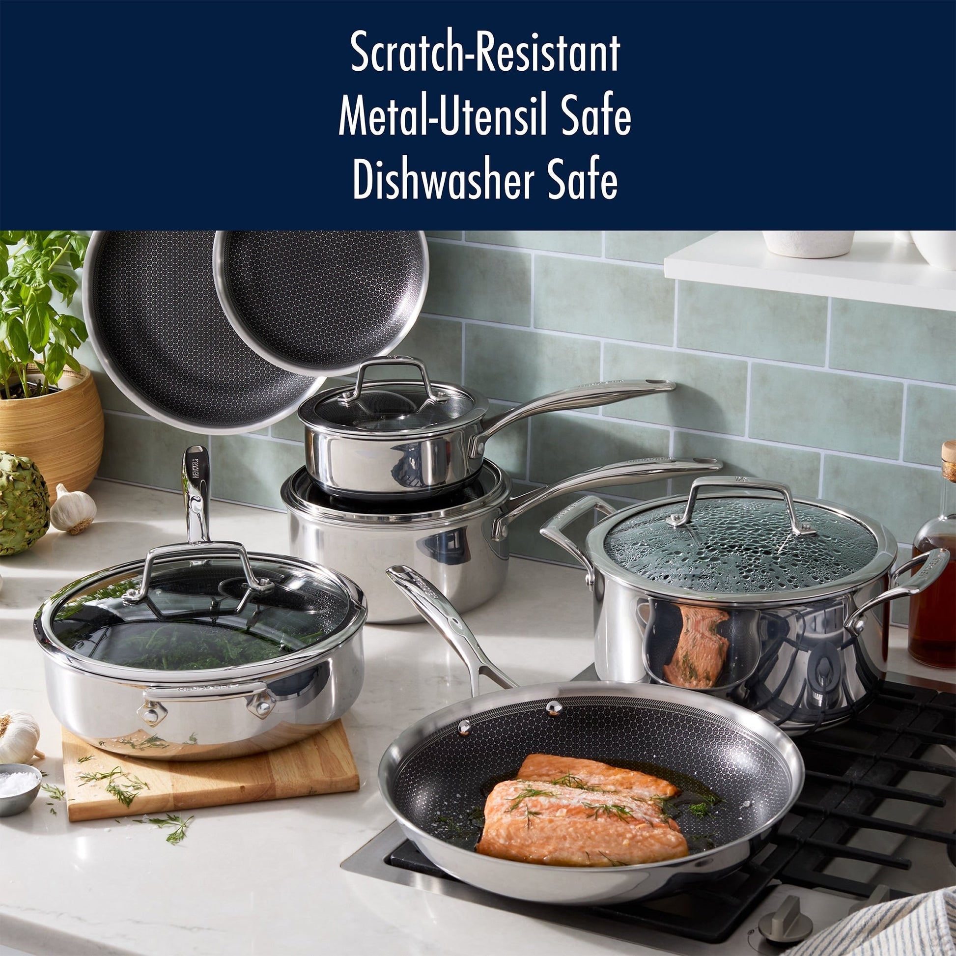 Ensemble de 3 poêles à frire HENCKELS Paradigm avec spatule et cuillère de service en prime - 5 pièces
