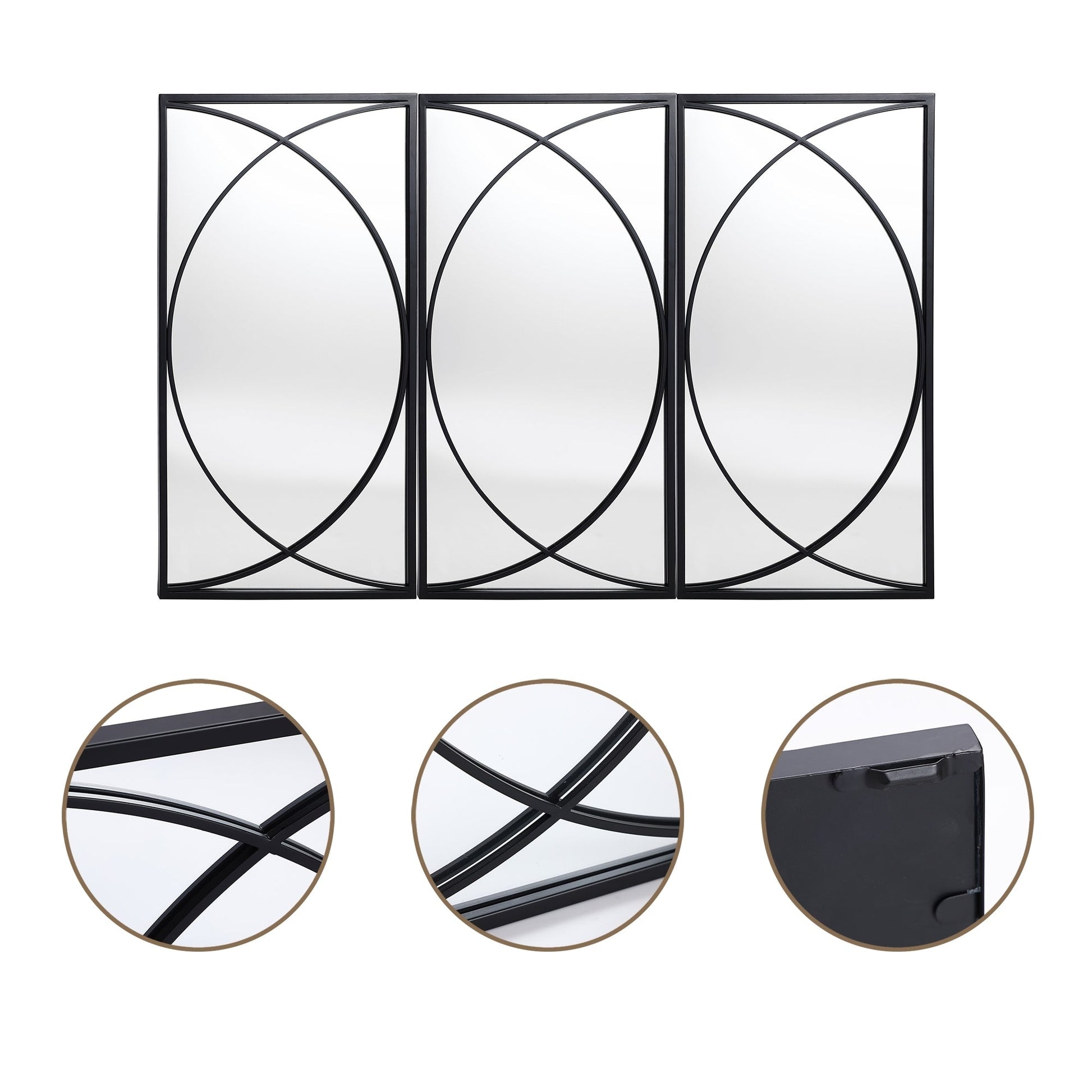 Ensemble de 3 miroirs muraux rectangulaires en métal...