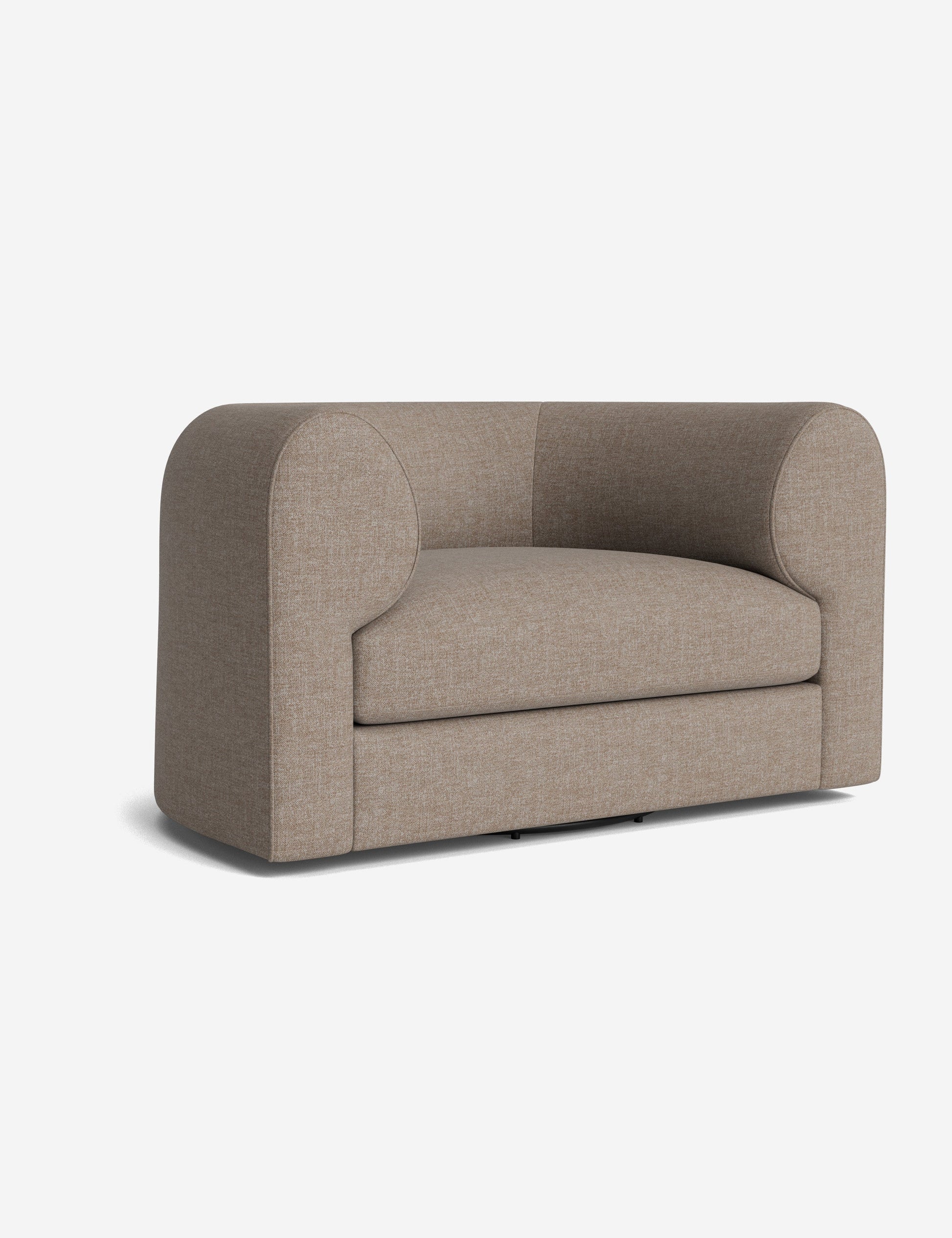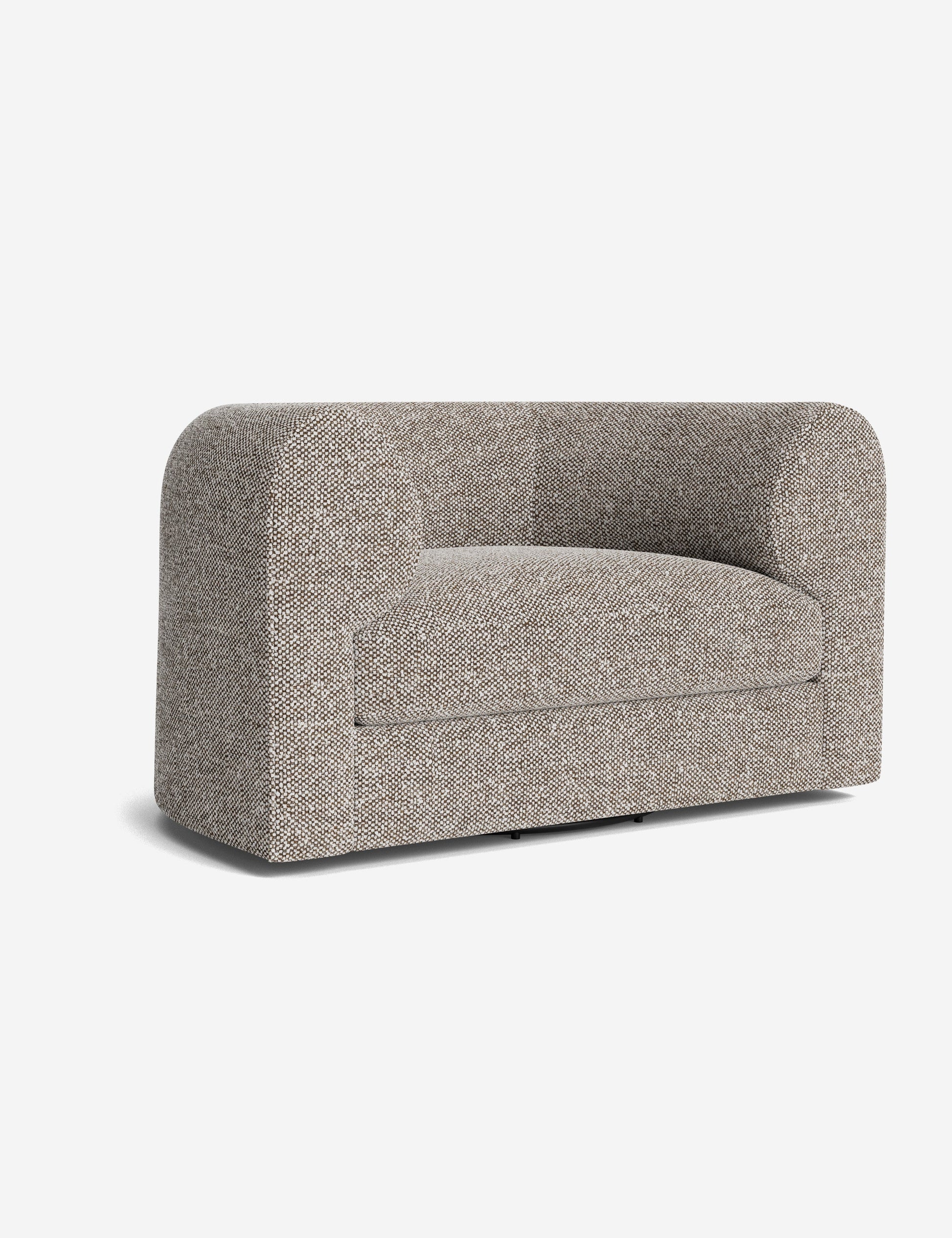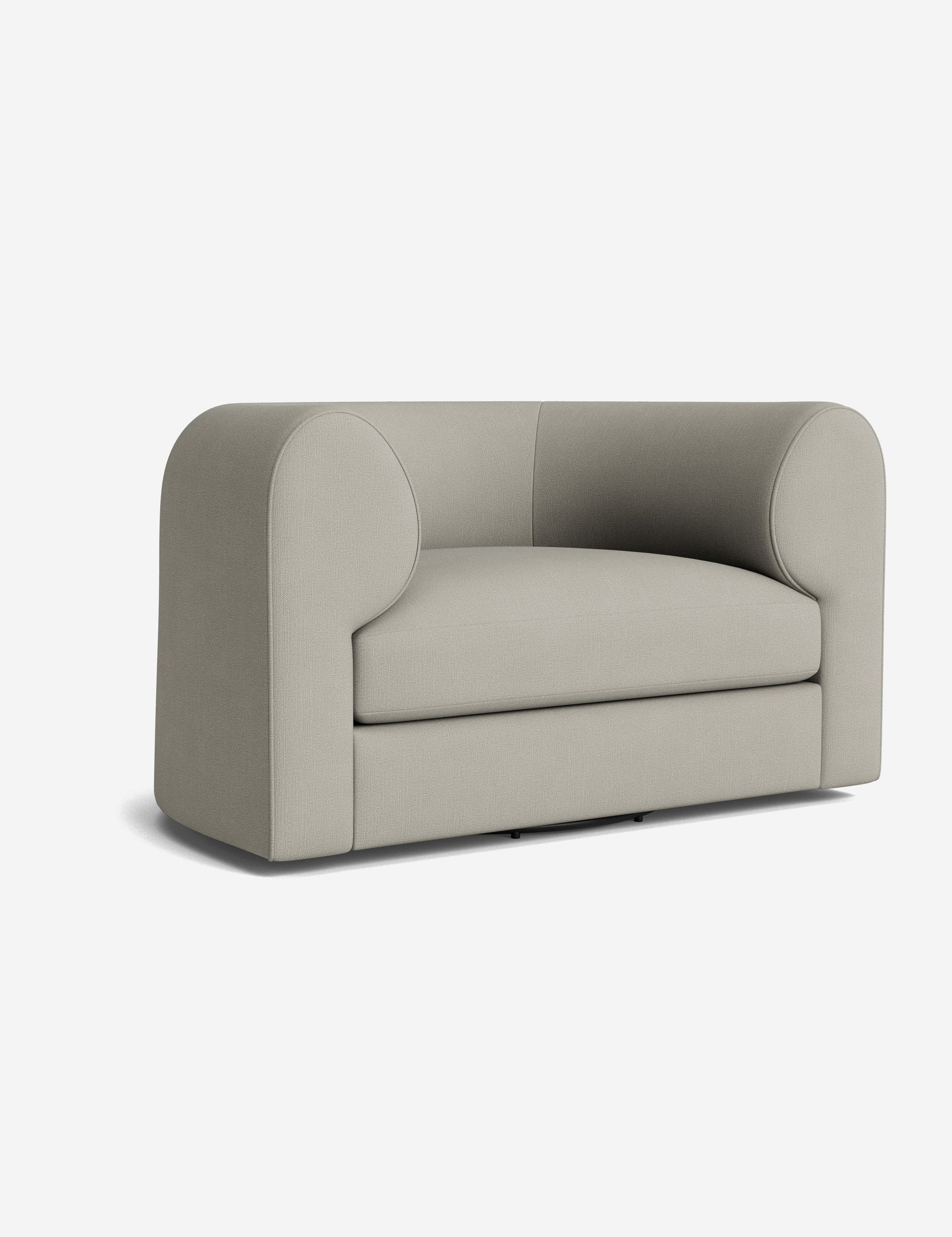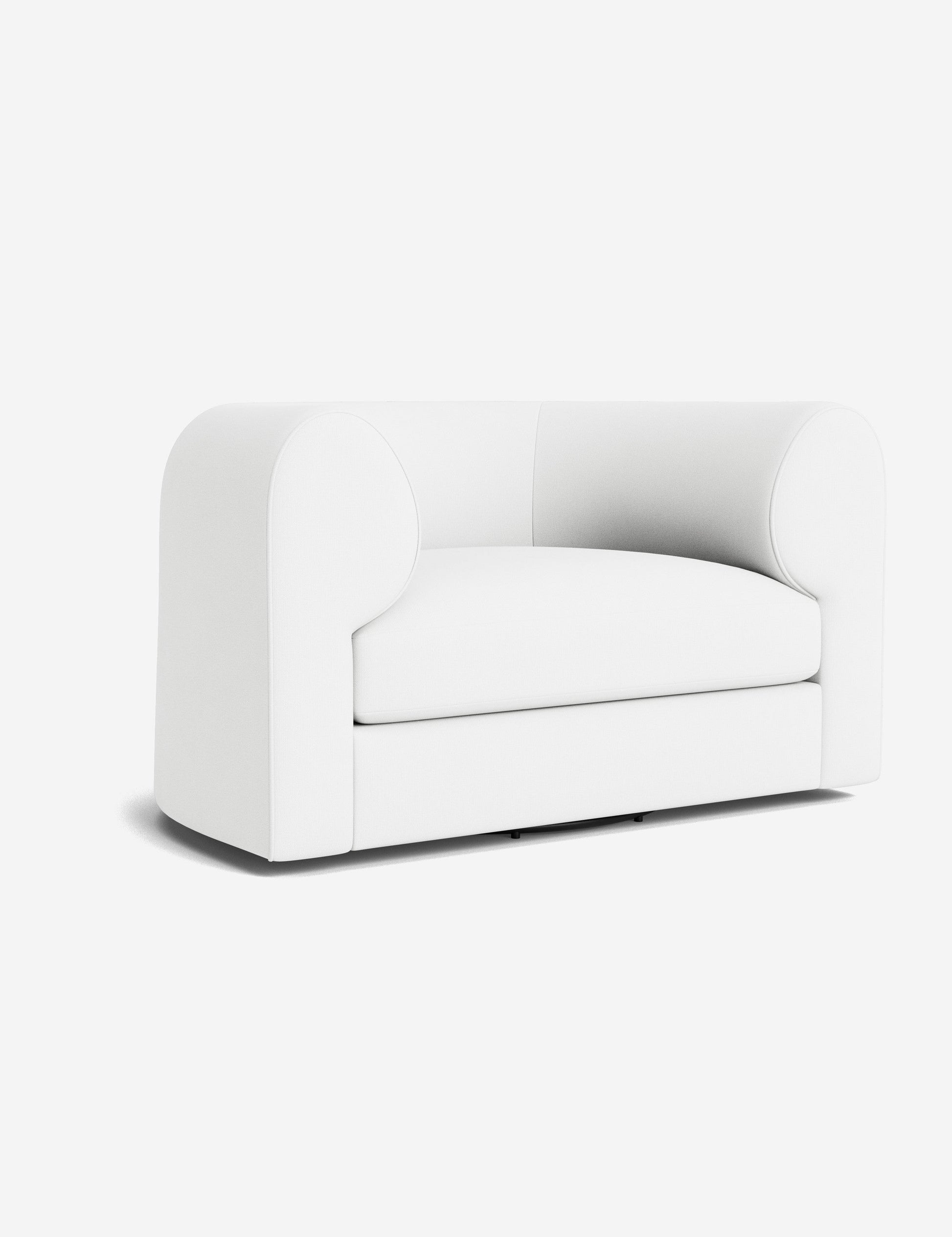 Notre fauteuil pivotant Sergio allie une touche d'élégance à un confort dynamique. Ses accoudoirs incurvés et son passepoil sur mesure accentuent sa forme sculpturale, revêtu du tissu de votre choix pour une touche signature. Polyvalent, ce fauteuil lounge est un lieu chic propice au confort et à la conversation.