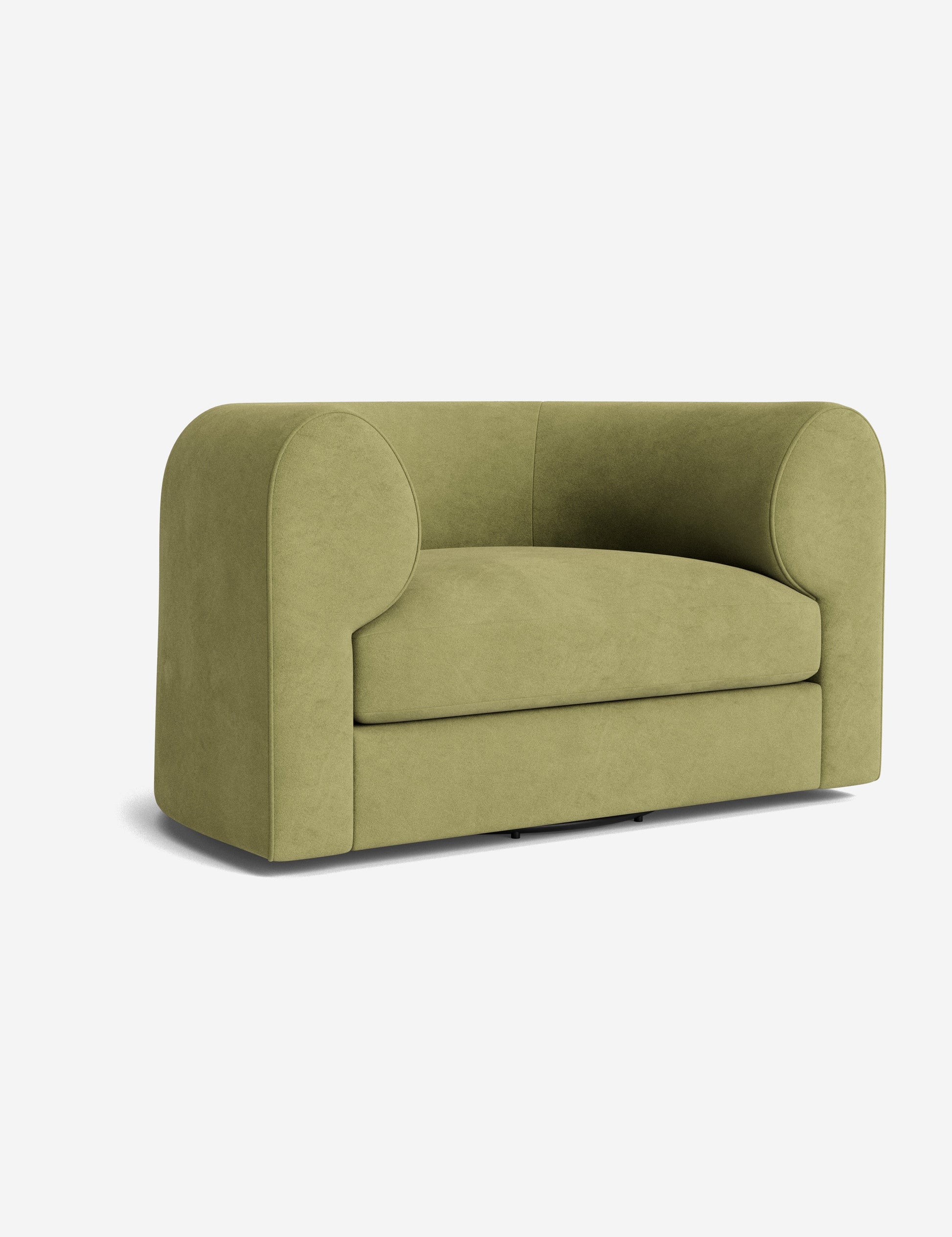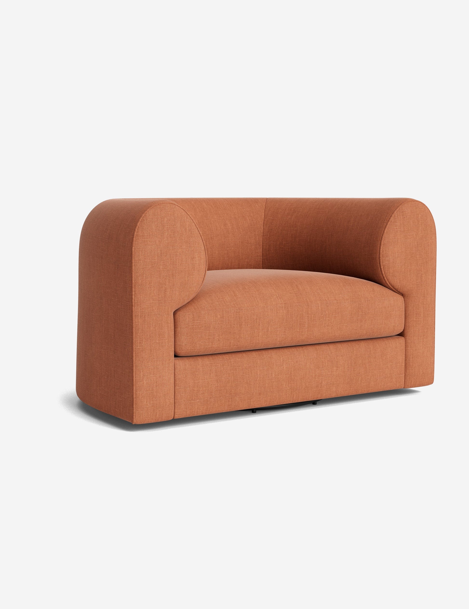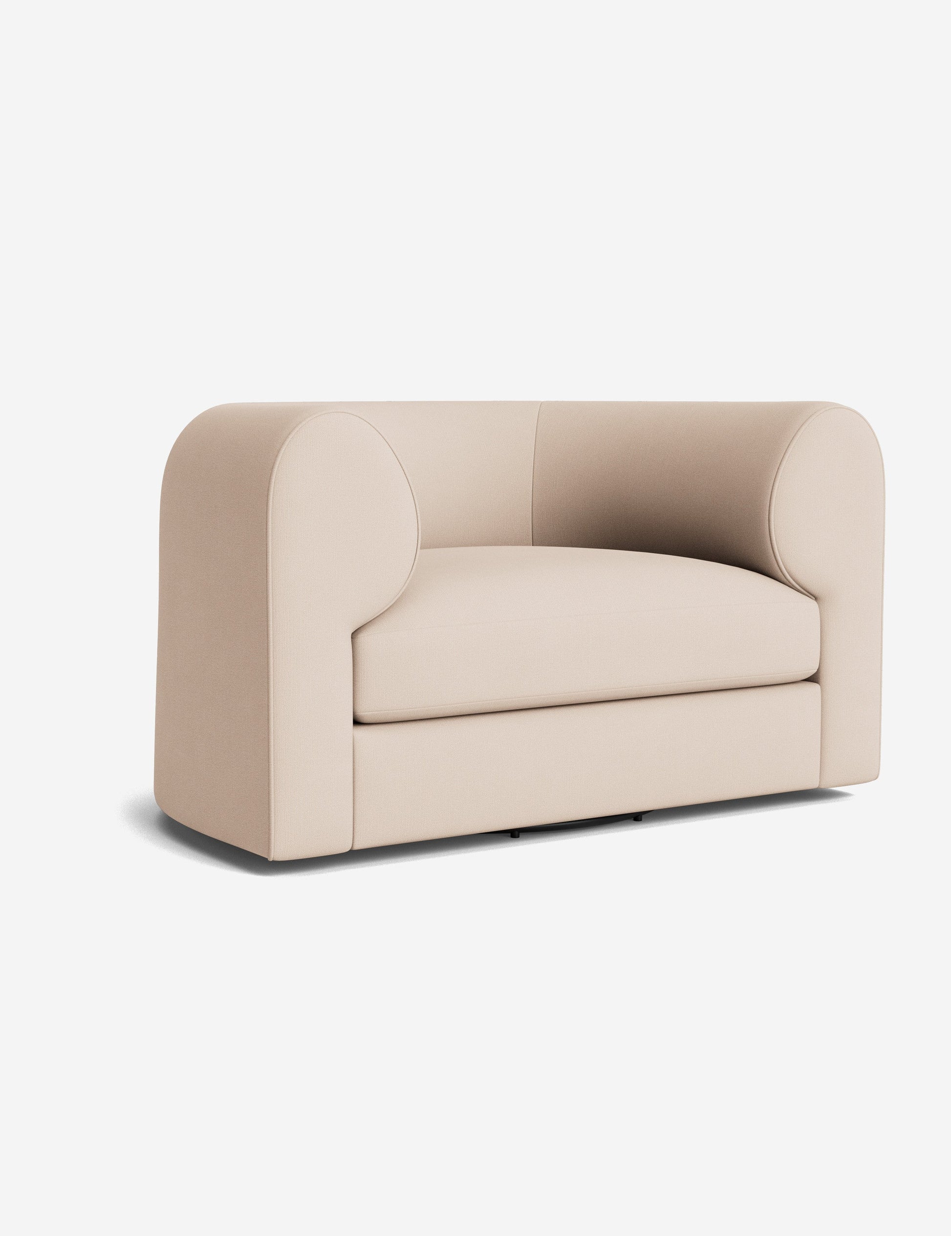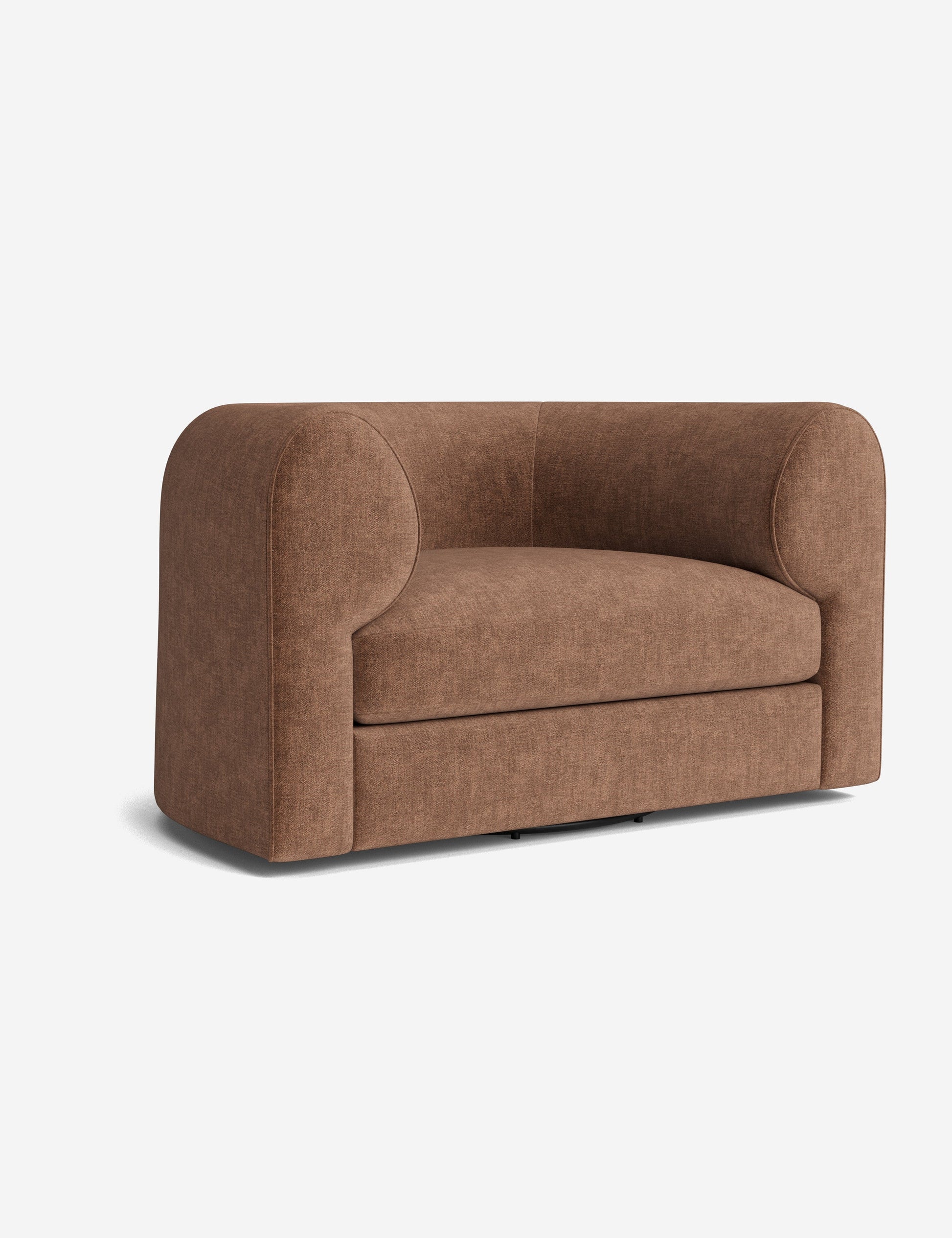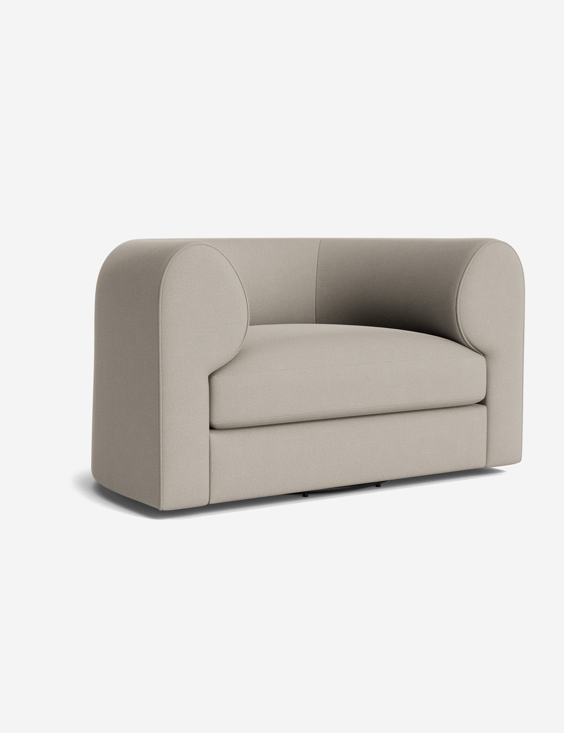 Notre fauteuil pivotant Sergio allie une touche d'élégance à un confort dynamique. Ses accoudoirs incurvés et son passepoil sur mesure accentuent sa forme sculpturale, revêtu du tissu de votre choix pour une touche signature. Polyvalent, ce fauteuil lounge est un lieu chic propice au confort et à la conversation.